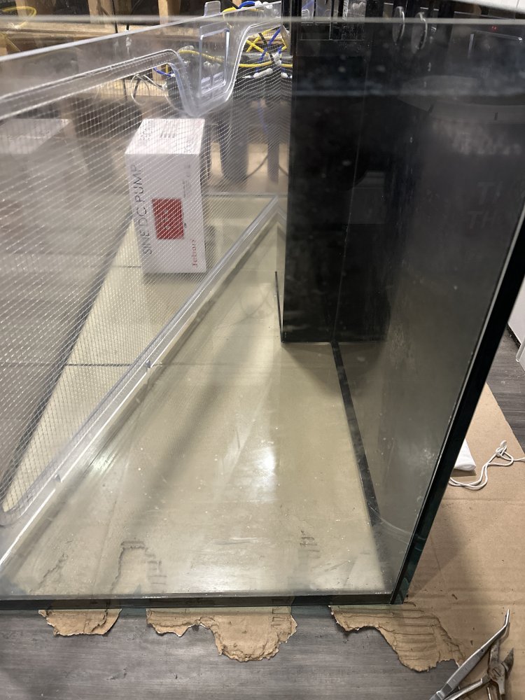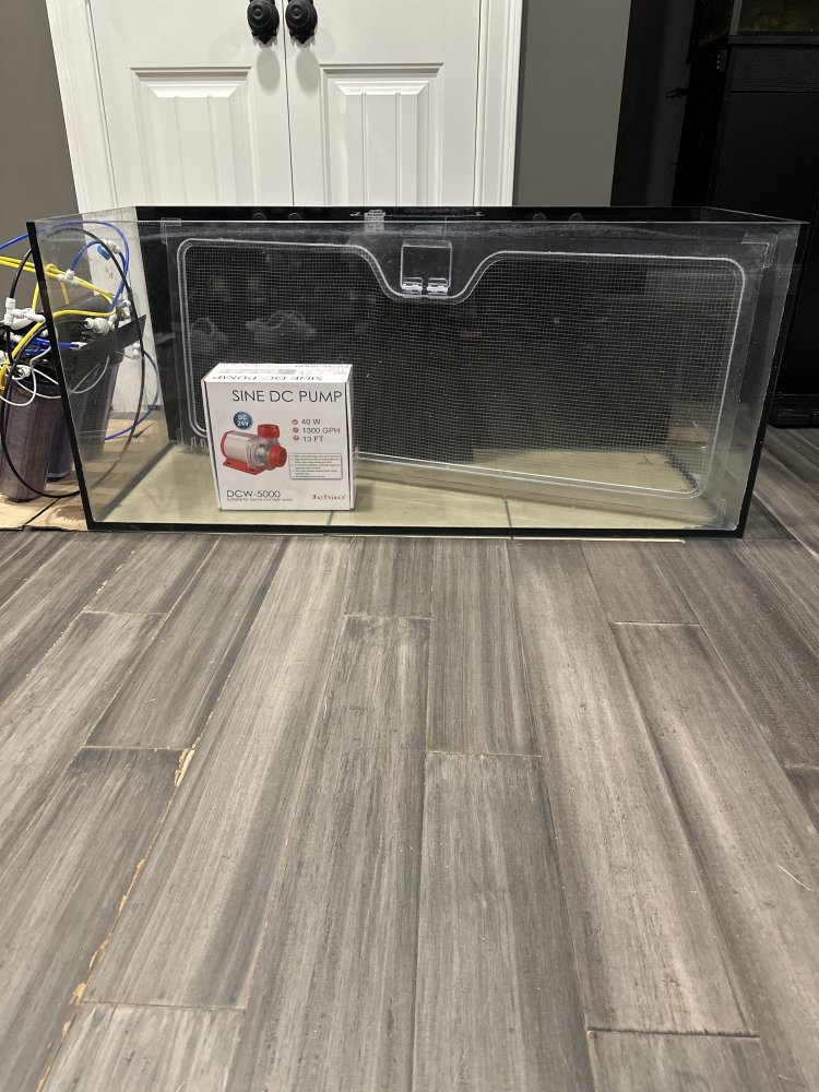 I purchased this from a local Reefer but I never set it up due to time and money. The last owner drilled the side of the stand for plumbing. The glass side panels and corners have some etching from coralline algae. I would like to sell everything together. $400.00