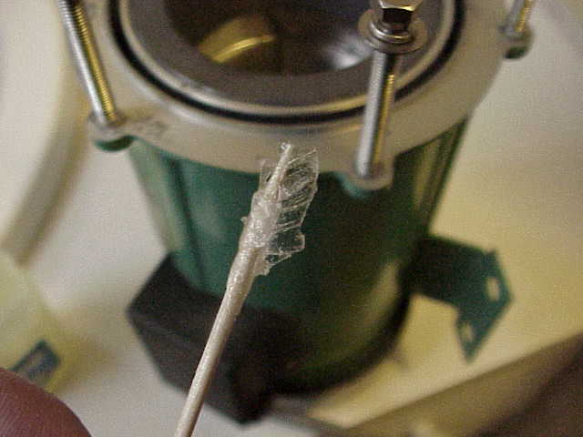 The amount of Vaseline you should be left with on the screw is shown below...put one turn of the screw into the pump housing without impellar housing installed after ea screw has been lubed. Turn them in 4 or 5 turns by hand to spread the lube thruout the threads in the pump body...
