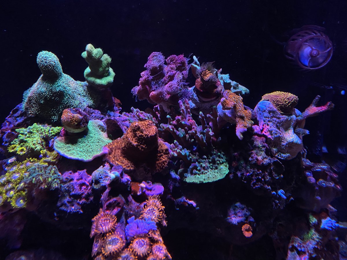My bad I missed the notification for this! Yes some basic stuff. None of the high end acros, it just doesn’t put out enough. I have a few montiporas, pocilopora, and pavonas. As well as one acro. Heres a pic of it now. It’s colored up a little since being under the ai hydra for a week.
