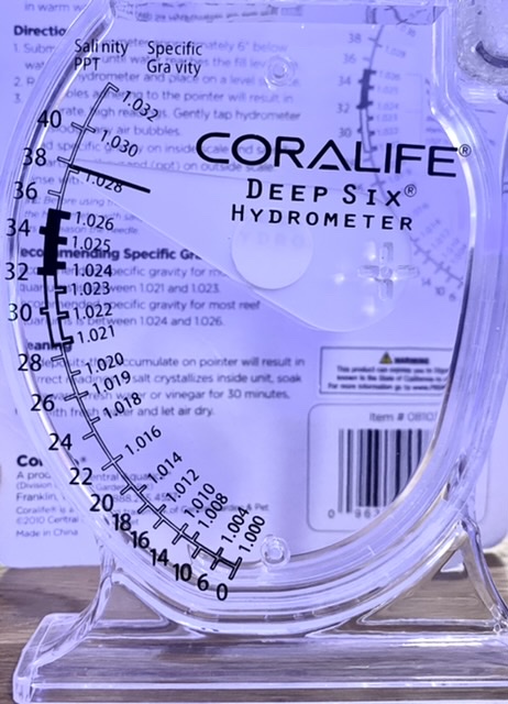 I haven’t checked Sg in a couple of weeks. I normally keep the Sg between 1.026 to 1.0265. My main display tank is fed a lot of frozen and liquid food and Sg creeps up over time. Sg was reading 1.0272 - 1.0274 according to the TM Precision hydrometer.