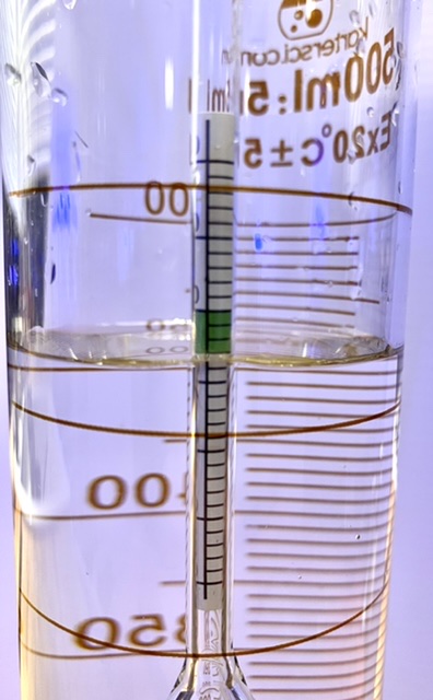 Plastic swing-arm hydrometer, just under 1.028