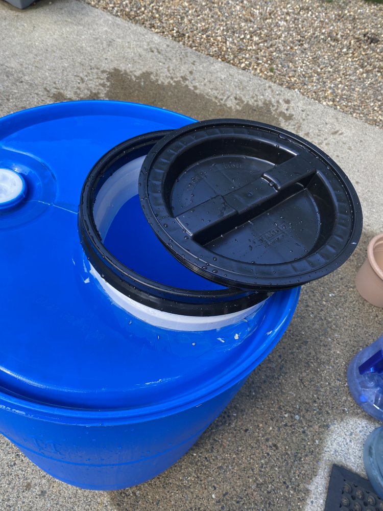 Then I bought a $10.00 5gallon bucket screwtop lid from HD, put it on a 5 gallon bucket, cut out a circle in the drum, and glued the bucket top in.