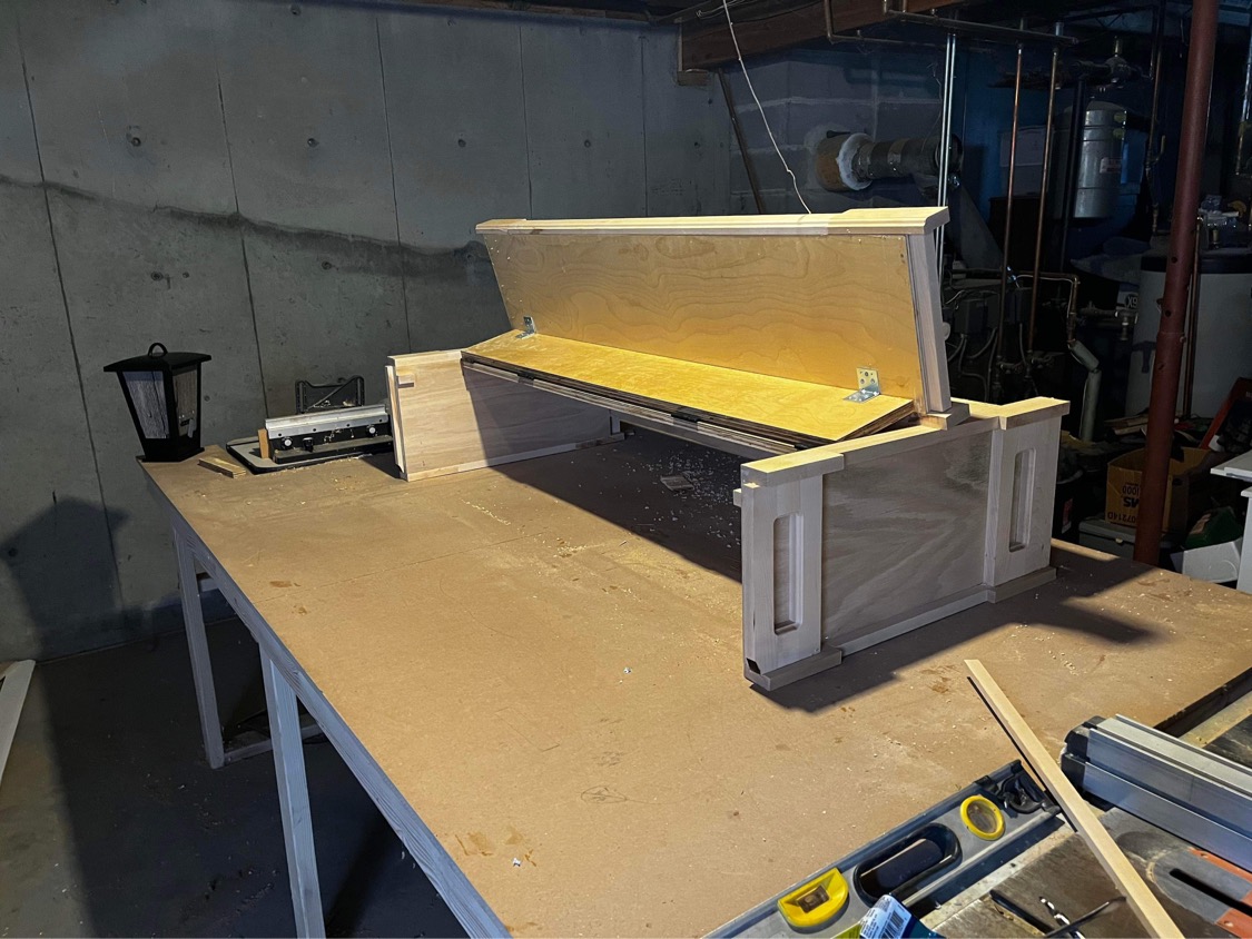 Stand and Canopy was built with maple and painted white. Could use some touch ups. Canopy has a an exhaust hole on top with a fan and another fan in the rear.
