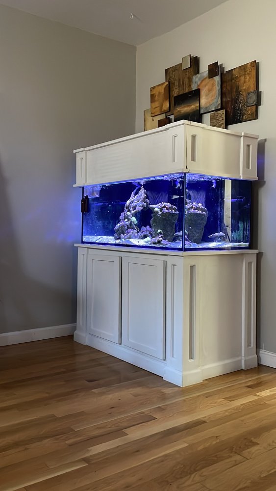 Tank is a year old. It developed a stain inside the glass down the middle and it bothered me. I asked the manufacturer and on R2R (link- https://www.reef2reef.com/threads/glass-ocd.941721) for advice. Any attempt to fix will require draining the tank. I took this opportunity to move my equipment and livestock to a smaller tank. People either didn't notice it or didn't care. I cared. Keep in mind its not a scratch. Tank has no scratches. It is some sort of mineral stain. Take advantage of my OCD!