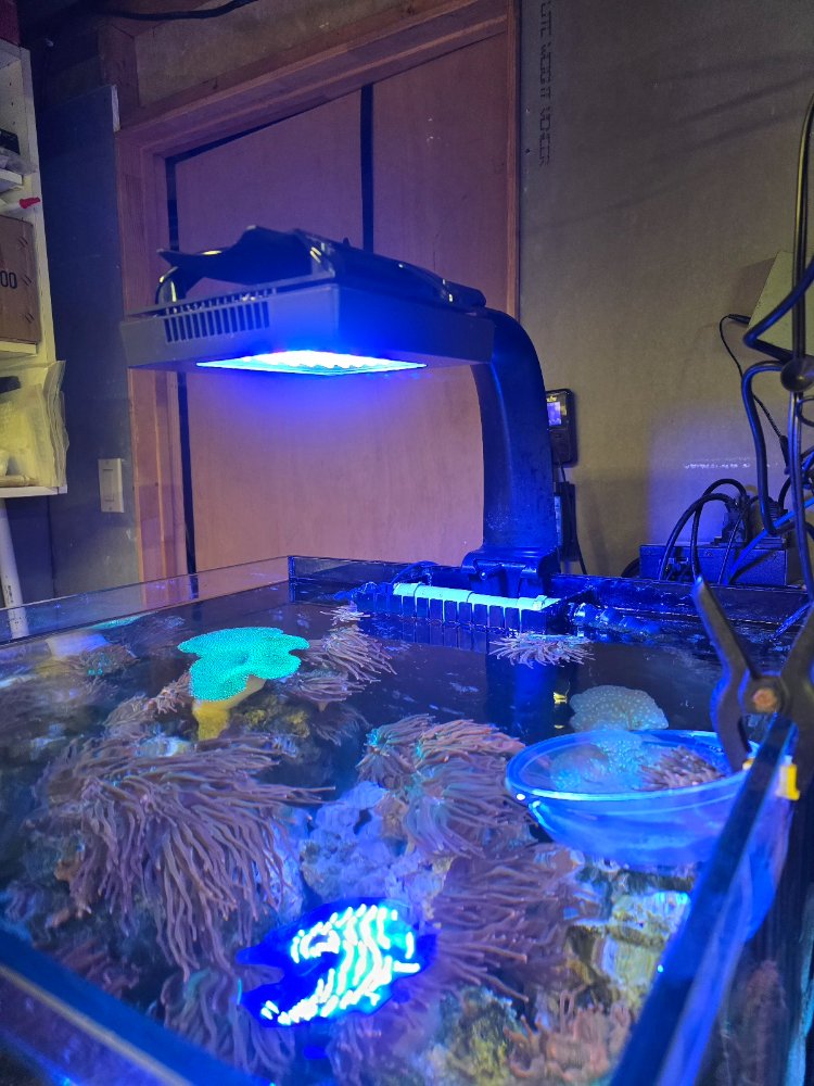 SCA 50 Cube aquarium, up and running. Tank, stand, sump, classic Apex Jr with 4 outlets and temp probe. Radion XR15 PRO with RMS tank mount, skimmer, return pump, power head, heater. mesh cover. Tank is full of live rock with numerous RBTA and mated pair of Tomato clownfish that regularly lay eggs. Large Hollywood stunner chalice, large toadstool leather, kanya tress, gold flake zoa, red digi.