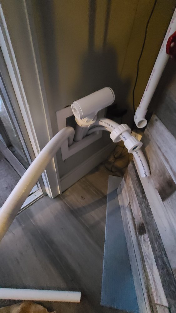 Plumbing was something I dreaded. I was not looking forward to the task to get through the wall and into the basement. It had to look clean. To accomplish this I decided to use a washing machine outlet box. With a little modification, it fit the bill nicely.