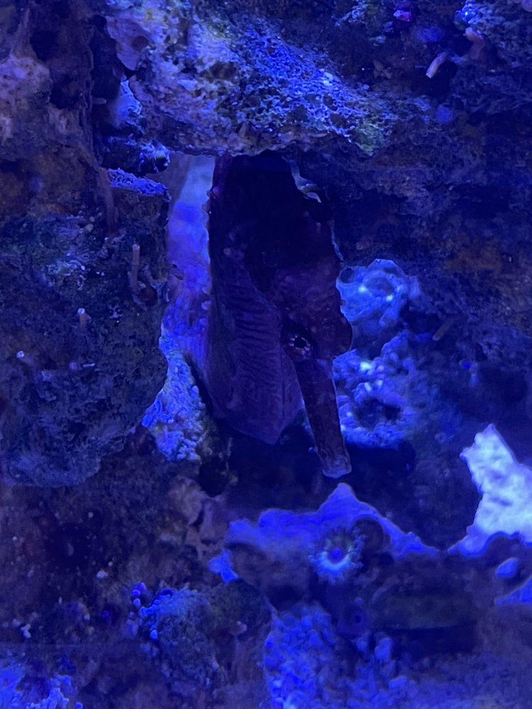 That’s why I have them haha. They aren’t hard at all for us they have a semi dedicated tank it’s a 60 gallon cube they are hippocampus errectus seahorses. They are the hardier of the types of seahorses and the bigger most common ones. They get frozen mysis two times a day, flow is more gentle but doesn’t have to be absent. My gonioporas alveoporas and gorgonians still move a bit in the current. The seahorses just know where the higher flow areas are to avoid. There are quite a wide variety of corals that can be kept with errectus seahorses mainly the big stinging ones are the ones that cannot be so can still be a reef tank. Temp I keep at 72 I believe the range is 68-74 on them other than that off the top of my head nothing else too special remember they hitch on just about everything so do what you can to keep them safe.that is so cool! my wife aways said she wants sea horses at some point. how hard is it to keep them?
