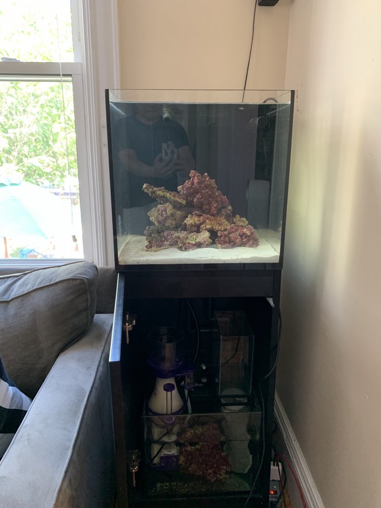 I have nano tank redsea 21 galon with skimmer s120 eshop icap 1k . With live rock . Sand included 700$