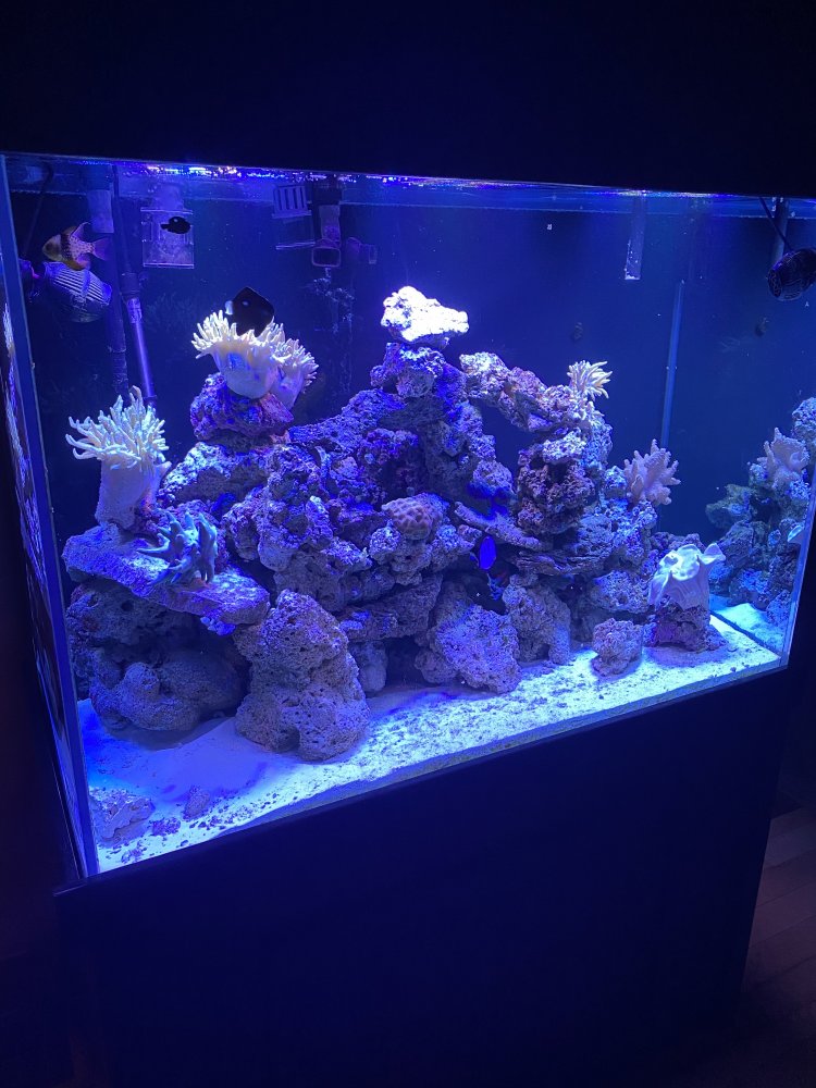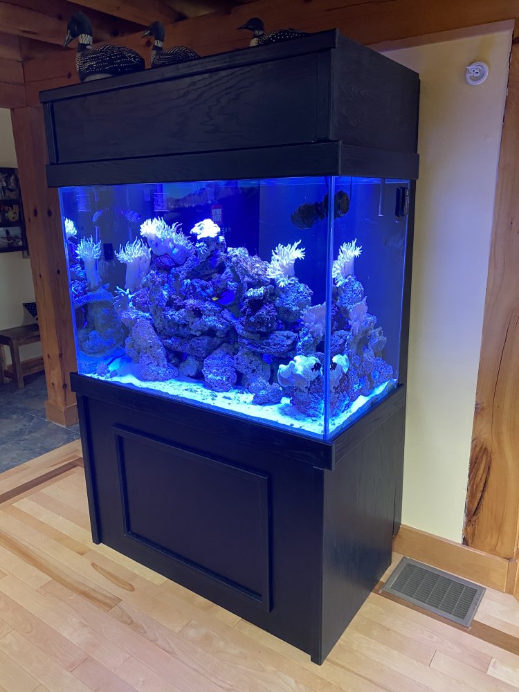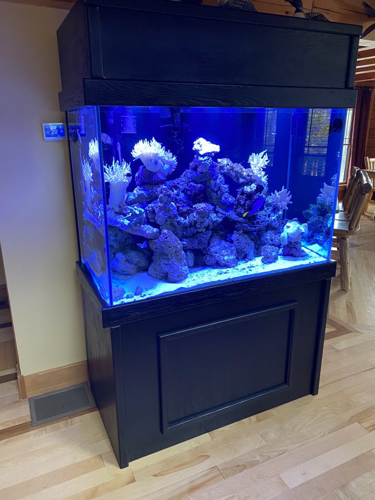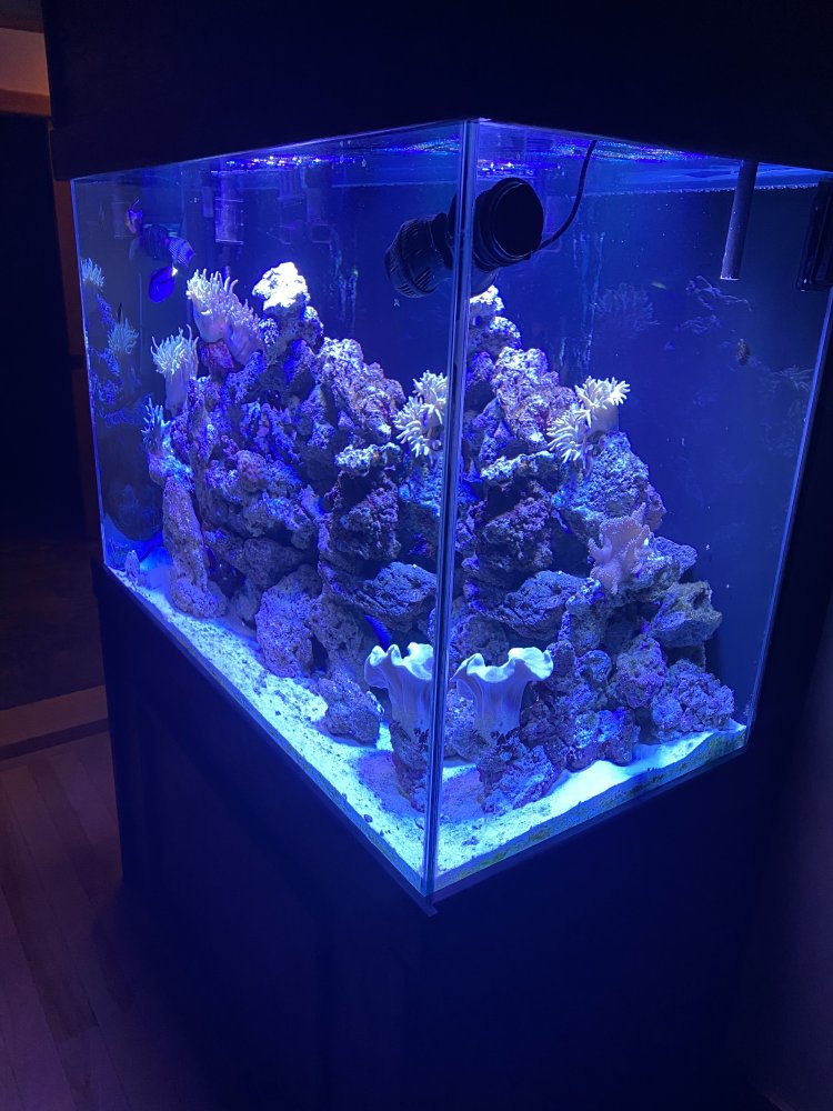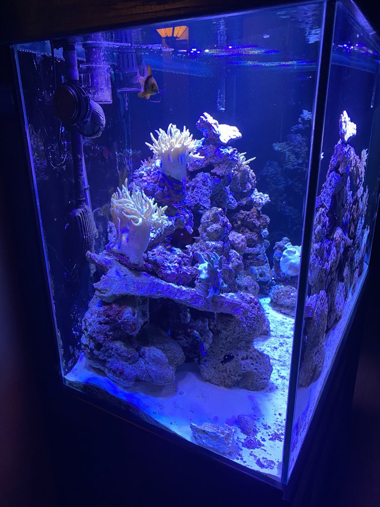 180 salt water cube tank -includes tank,stand,canopy ,fish and live rock