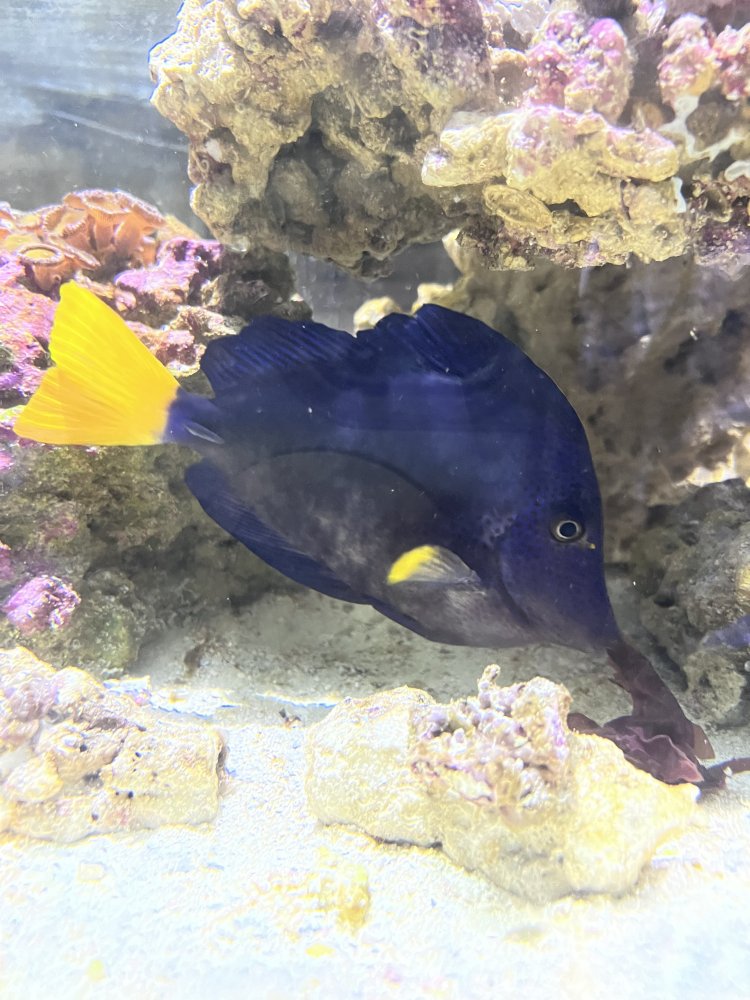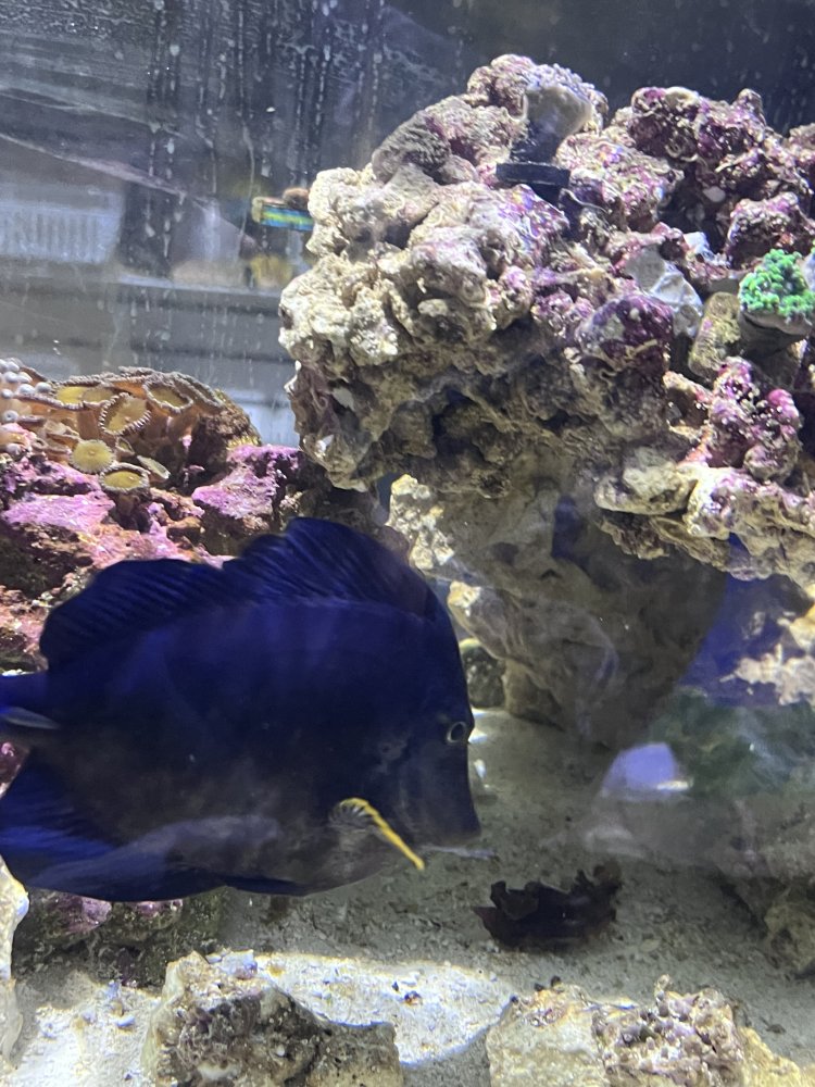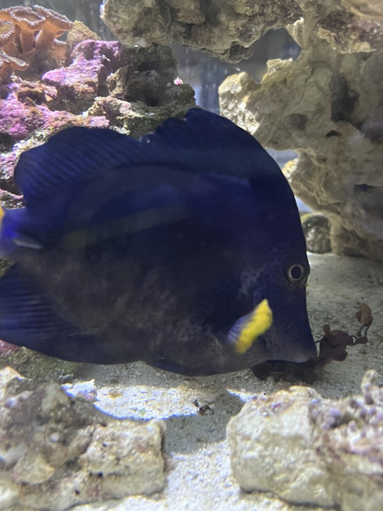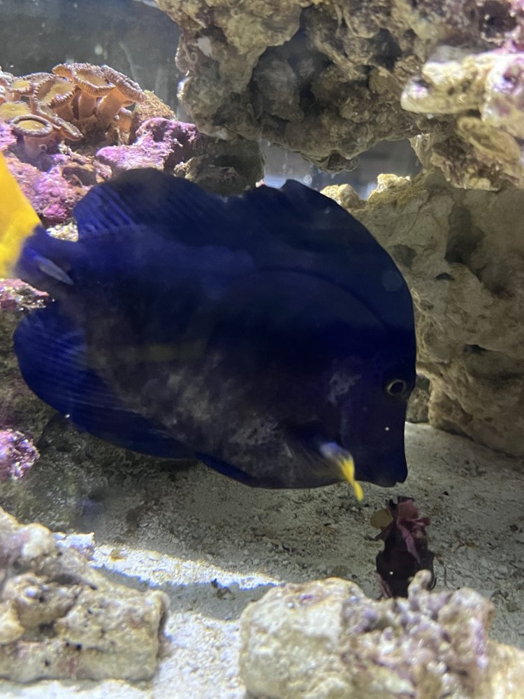 Hey everyone I’ve recently noticed my purple tang hasn’t been looking the hottest lately it’s been eating sea weed and pellets like crazy feeding my tank 2/3 times a day if anyone know what’s going on please help. One side of him looks perfectly fine while the other side looks grey.