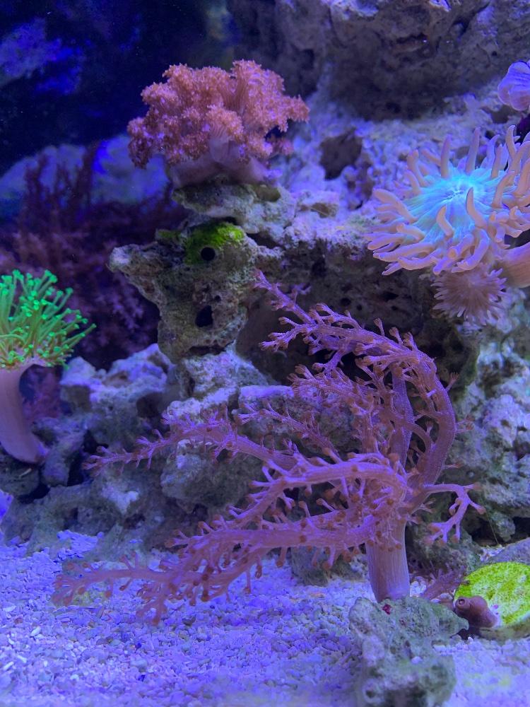 I have three Grube's Gorgonian frags: ($15) Its a nice tall, bushy, fast growing, beginner gorgonian if you're not familiar with it. I've never had to feed anything special. You'll get nice movement if you place somewhere with moderate turbulent flow.