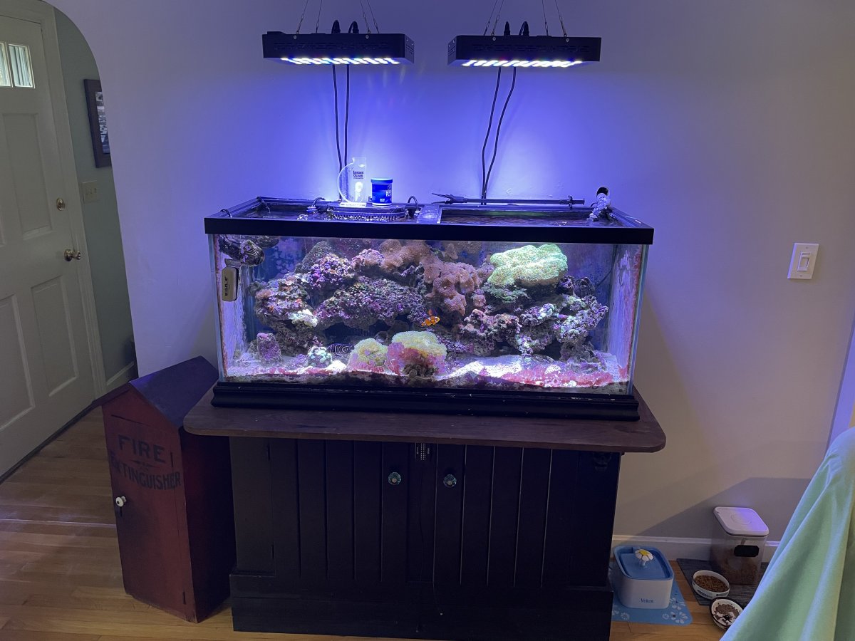 I’ve lost the time for the tank. It is behind on cleaning but has a really healthy base. There has always been population of turf algae that needs to be trimmed back. Selling as a whole set up. Will no split up. Photos taken today.