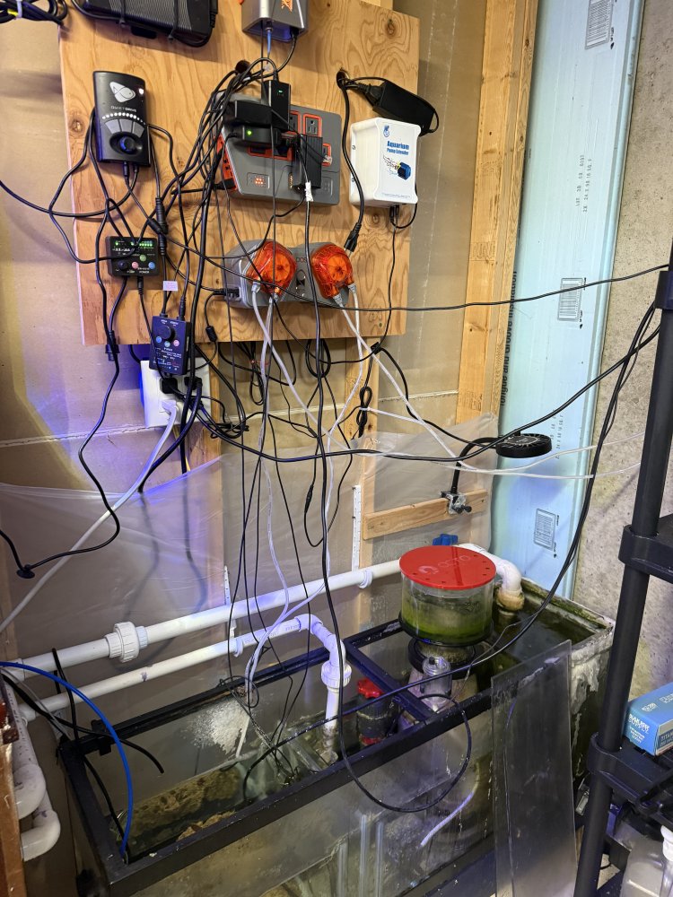 Reefbreeders photon v2, ecotech mp10, reef octo skimmer, apex fusion with dos pump, dividing anemones (dozens of divisions over the years), lots more.