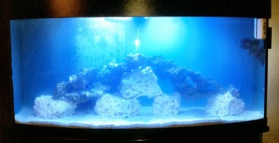 I have a 72 gallon bow and it's currently an African cichlid tank. Not for long! I wanted to do this years ago but I didn't have the funds. So far I have 70 # of sand waiting, and am buying 100 # of lr. It already has a 20 long sump and a aqua c hob skimmer.