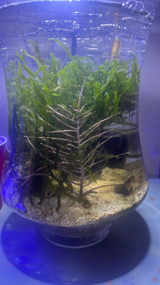 Finally getting around to a build thread on my dwarf seahorse tank. I just upgraded the tank to a eshopps deskmate! Attached are pictures of the old tank. Lack of filtration combined with hard to clean glass and frequent feedings made it too much work to keep the old setup going.