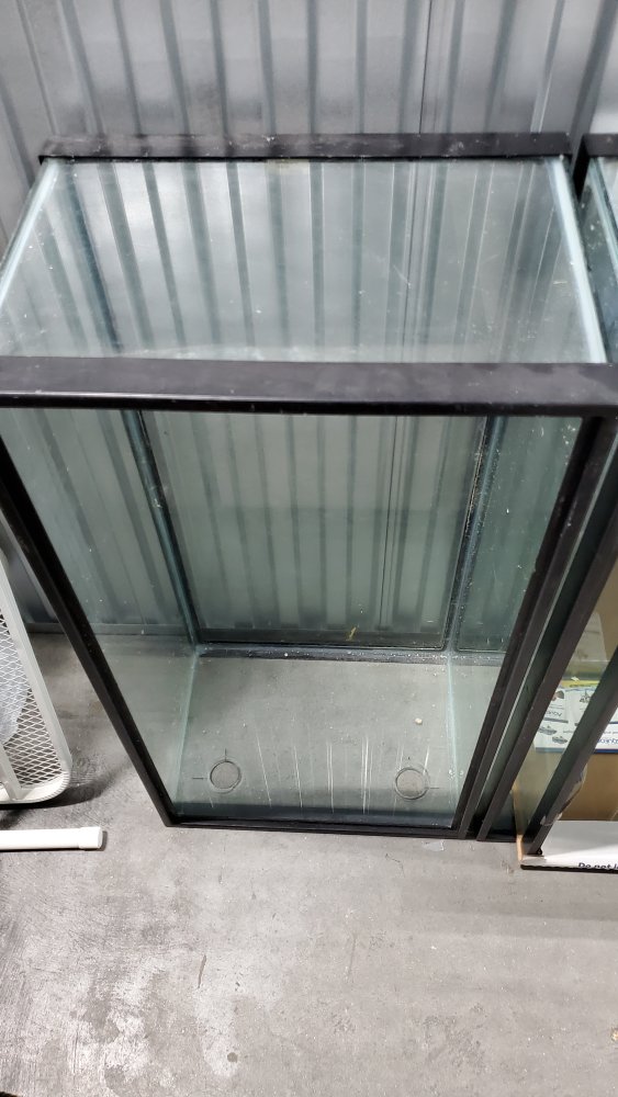 1) Custom glasscages rimless 36x24x18. Half inch glass, black silicone, front panel Starfire glass, back overflow with 3 one inch holes on bottom $150