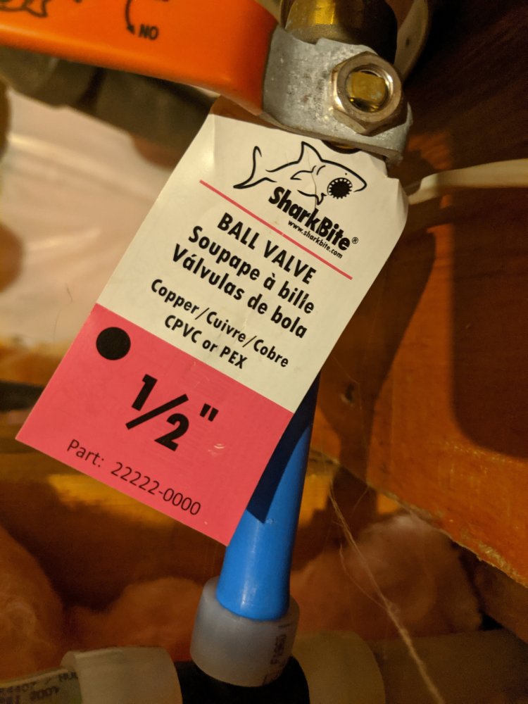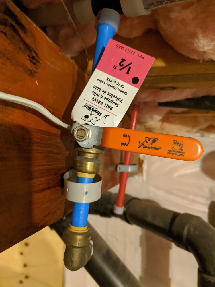 Don’t use shark bites! Do your self a favor and buy a tool! 1x 1/2” pex tee, 4x 1/2” stainless steel pex clamps (oetiker), 1x 1/2” pex x 3/8 od compression valve https://www.supplyhouse.com/Bluefin...KDOUY-BPhwecqS452grYsEnaN6HXFmTRoCpdQQAvD_BwE