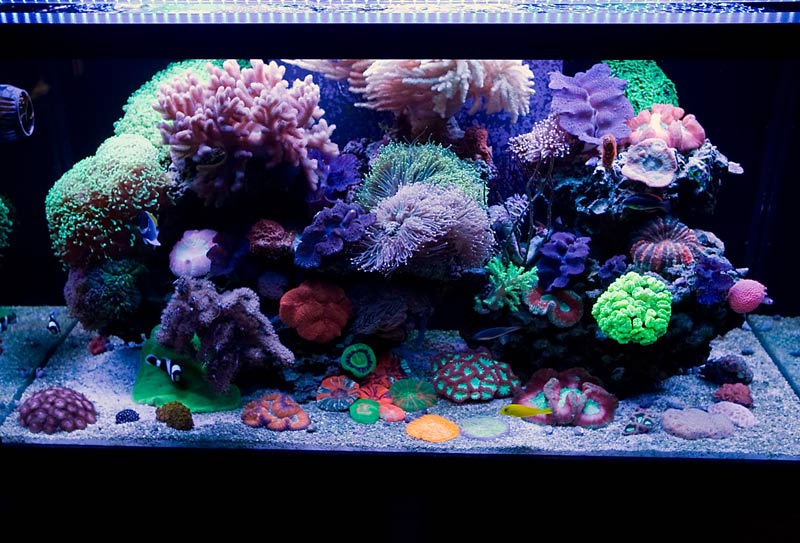 OK new site (still don't know if I like it) Been away for a while 3 months or so busy at work. I think I need to take some new pictures consider I changed a few things like sold all of my sons SPS and moved the softies up stairs can't beleive It almost didn't fit. The 120 is mostly clams and LPS will be adding more LPS's soon. Don't know what I'm going to do with my son's tank yet TBD.:)