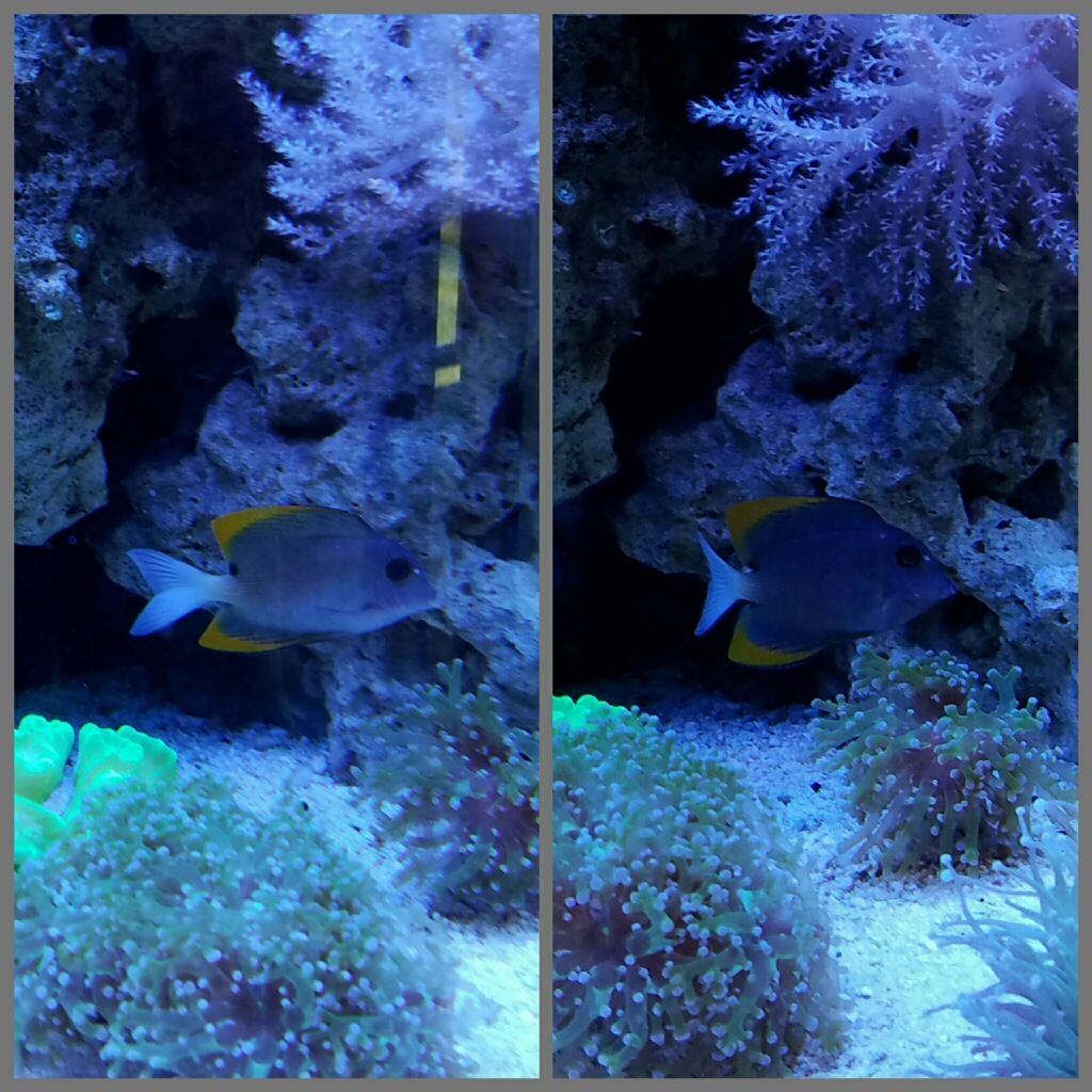 Any idea what would cause this? Wife just called and said he is looking pale and may be breathing a bit heavy. Only thing I did yesterday was remove a couple base ball sized rocks out of the tank. I also tore a tree coral from one of the rocks (similar to a kenya tree but its blue/green) Two clowns and scooter blenny all appear fine. Shrimp, snails and few hermits are all fine also. Any ideas?