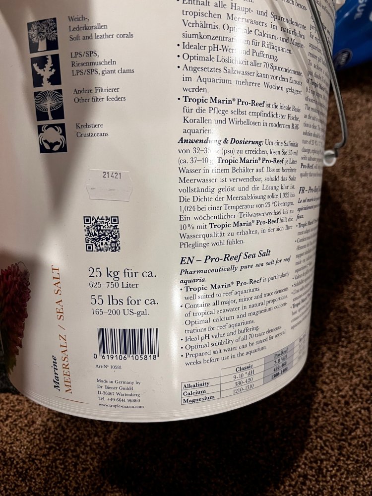 D Discovery Well-Known Member Moderator BRS Member Aug 4, 2022 #1 Saltwater Aquarium finally shipped a German bucket to replace a Turkish one. I had since switched back to Reef Crystals. If you use Tropic Marin - here's a new bucket for pick up in Hopkinton. They currently sell for $113.00 Attachments IMG_0932.jpg 177.4 KB · Views: 162