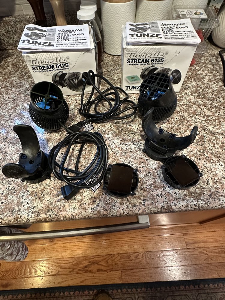 I have two Tunze 6125s for sale. About 6 months old. They work great. But they are AC pumps and can’t be run on a short cycle controller. I upgraded to the DC version (lot more expensive) so I don’t need these any more. I paid $238 each for them. I’ll sell them for $75 each. Pick up in Sutton MA.