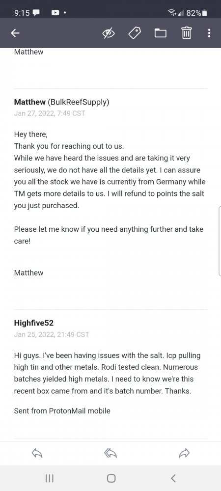 I've figured out the issues in my tank. It's been a long 8 months of steady death with parameters being super stable and a recent icp tests and separate water testing facility has nailed down tin copper and aluminum in tropic marin reef pro salt. Bulk reef has known about this and tropic marin has also. I urge you to look at your buckets. Batch numbers will be issuing soon on bad batches. This is very bad. Class action lawsuit started by another member. I'll keep you all posted. Bulk reef has known about this also.