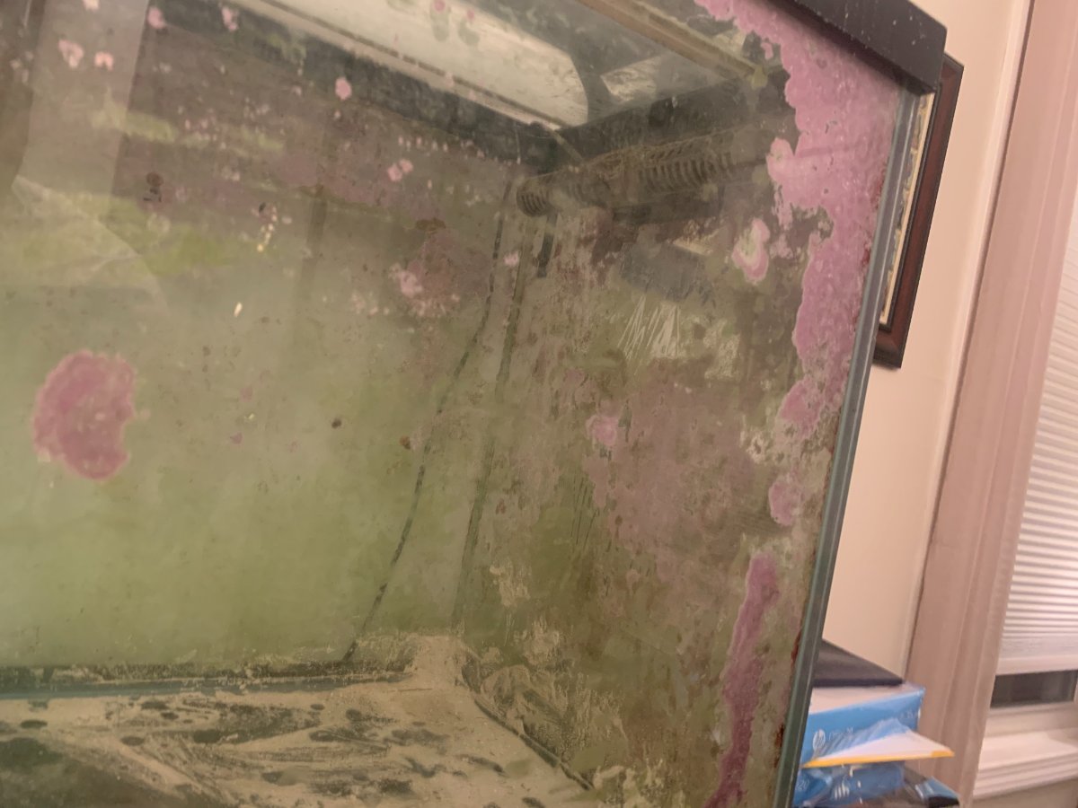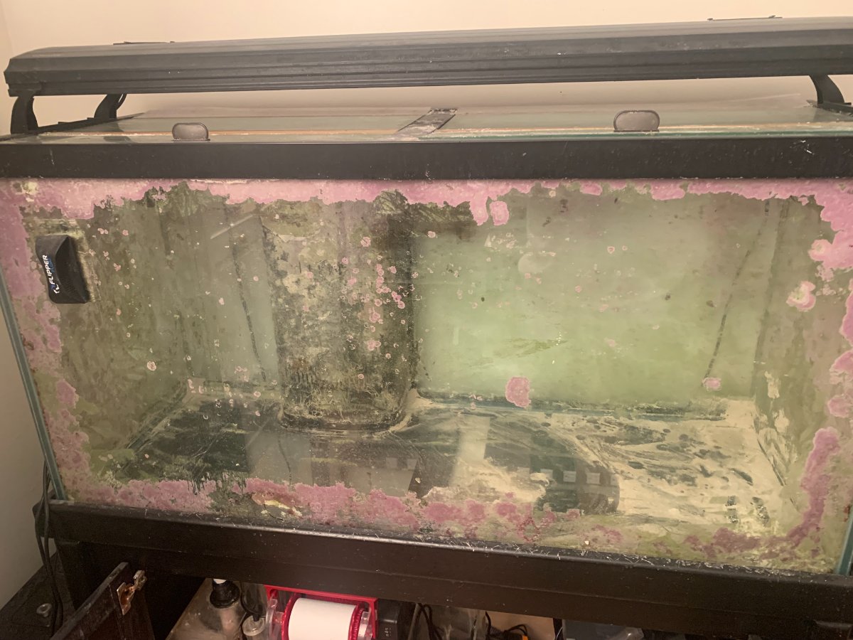 The tank still has coraline on it, my tank was always growing like crazy and it was always a sign that the water quality was good and i liked the look of it so i never fully scraped it off. Should scrape off easy however. Overall the system should be plug and play after a little clean up.