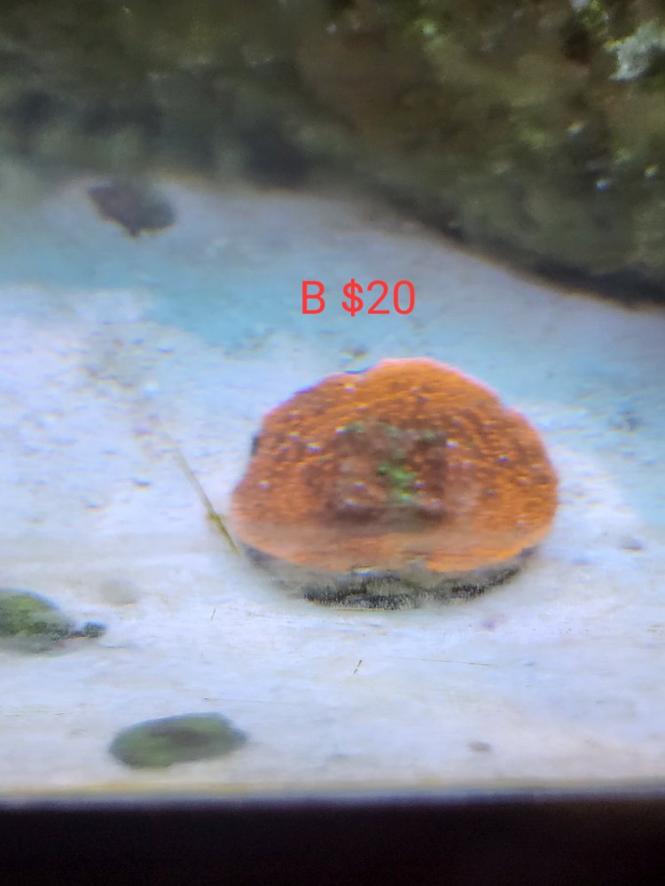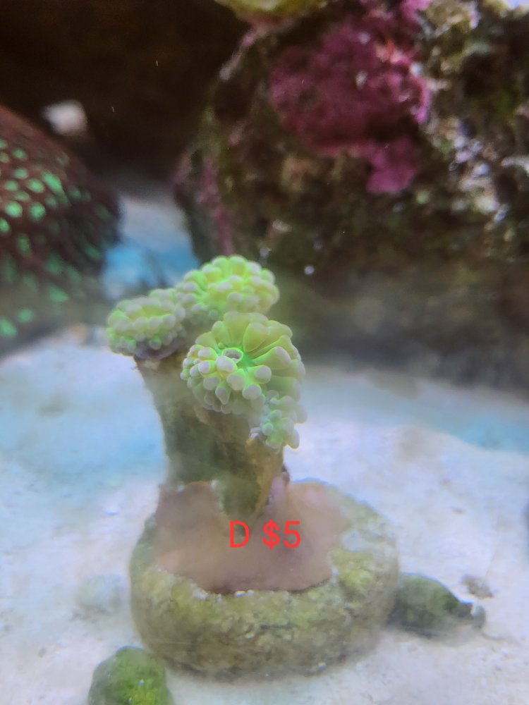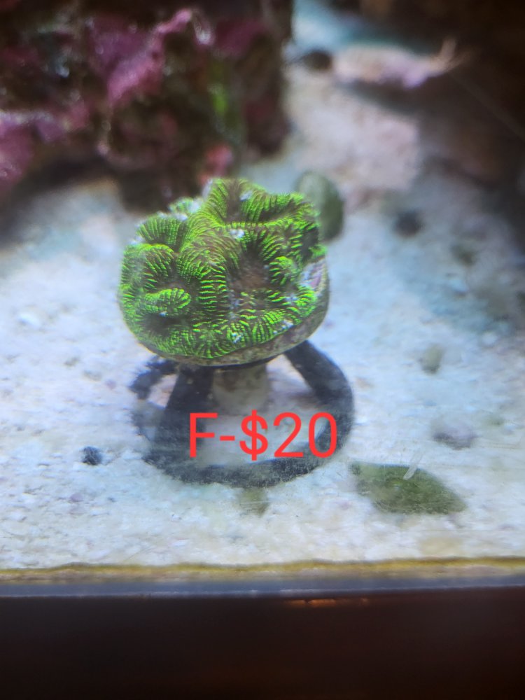 OP OP robbie c Well-Known Member BRS Member Dec 26, 2023 #4 A - miami hurricane chalice frag pending B - grafted monti frag C-D-E - hammer frags E pending F- leptoseris G- tounge coral H- favia i-med toadstool gone J-large toadstool gone K- med green toadstool gone frogspawn $5 per head Attachments 20231226_120914.jpg 92.3 KB · Views: 200 20231226_120900.jpg 73.7 KB · Views: 217 20231226_120849.jpg 78.1 KB · Views: 191 20231226_120846.jpg 75.1 KB · Views: 184 20231226_120844.jpg 80.1 KB · Views: 196 20231228_115820.jpg 80 KB · Views: 136 20231228_115826.jpg 84.4 KB · Views: 150 20231228_115830.jpg 88.8 KB · Views: 146 20231228_115754.jpg 114.5 KB · Views: 132 20231228_115747.jpg 68.1 KB · Views: 138 20231228_115742.jpg 77.8 KB · Views: 133 Last edited: Dec 31, 2023