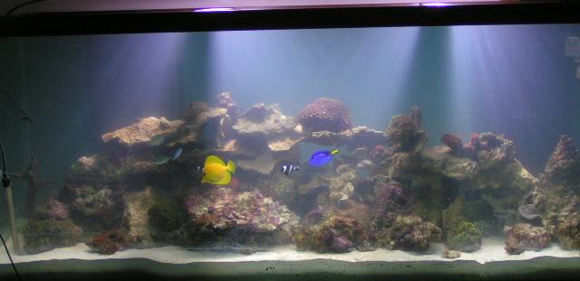 Thought I'd post a couple of updated tank pics.....beautiful clear water and a nice new (used) 72" metal halide light...free of charge....gotta love it!!