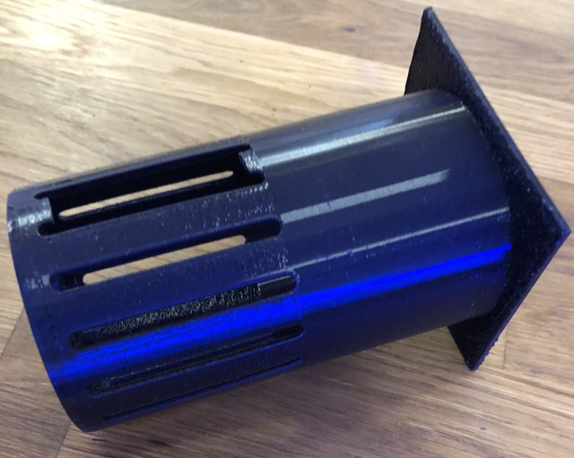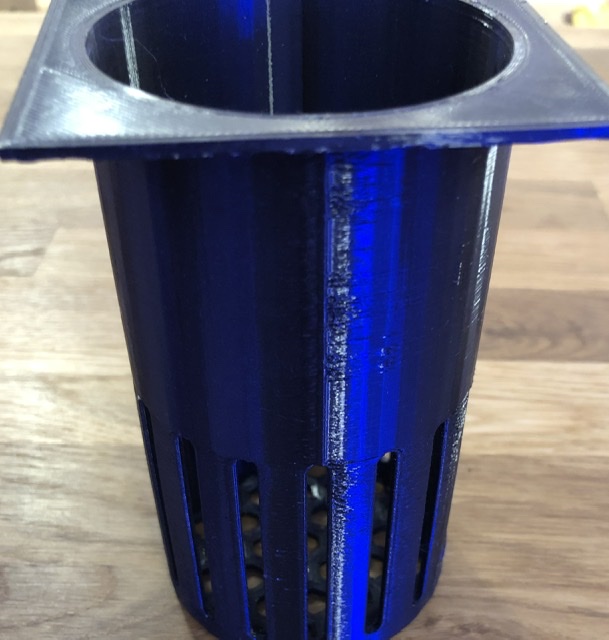 * 3D printed filter floss/media cup (1 of the slats was removed to increase flow through the cup - see photo).