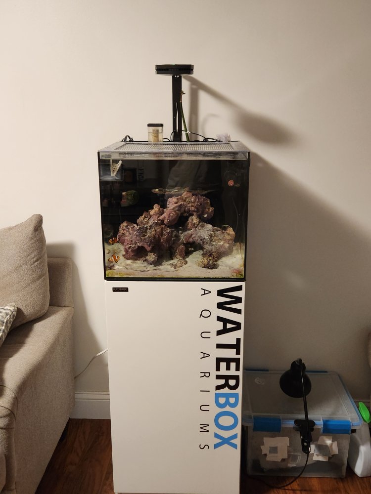 Waterbox cube 20 and stand all equipment about a year old selling because I have a bigger tank and just want to focus on that I'm willing to take trades for live stock and sps coral only or some decent wave maker for a 100 gallon tank. 9783876447