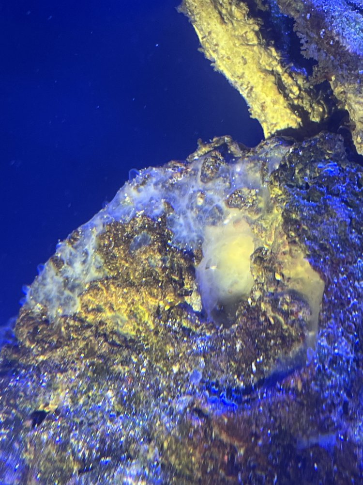 So I have this white film spiderweb stuff growing on my rock only in one area what could it be