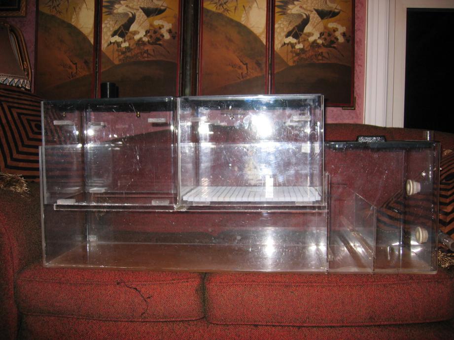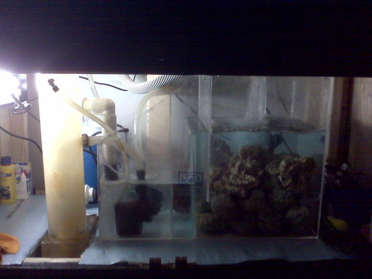 I purchased this filter at a great price from a fellow member. It is a wet/dry with three chambers. The two chamber on the left have boxes that can lift out and sit about 6" of the bottom of the main filter box. I would like to get the most out of the filter. Does anyone have any ideas as to how I can best set it up? Bio balls? Live Rock? Sand? Skimmer. I know lots of questions sorry. But you folks know best how to get the most out of a configuration. I will try to post one more view. Thank you.