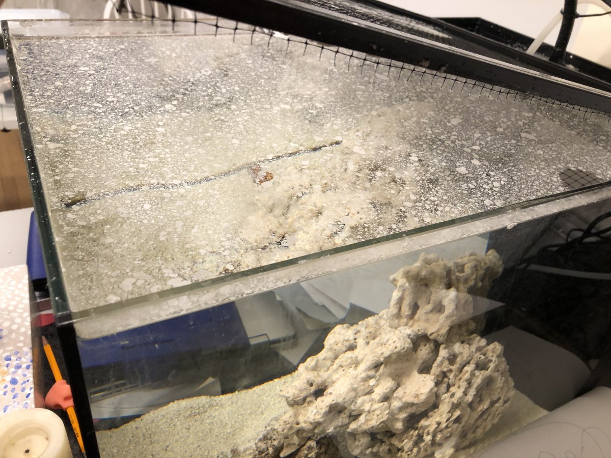 Yeah, looks like detritus film from excess feeding or maybe from organics on new rock. Skim on regular water changes and follow what Bao said and you should be good if that is the problem. You want to be sure you keep it clean as it will limit oxygen exchange.