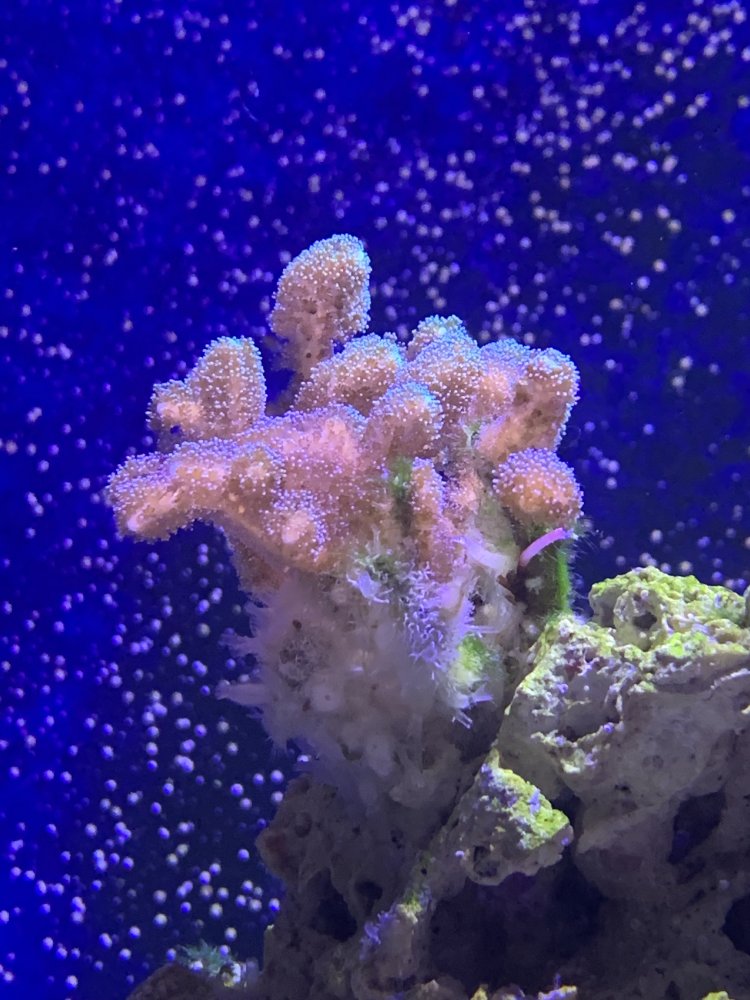 This is a birds nest coral which started a little smaller as a frag, the white stuff has taken over the skeleton of the bottom of the birds nest (what was previously birds nest but is now skeleton because it was overshadowed, if you know birds nest you get it). So these used to be skinny legs last month but are now white dense forest and I’m afraid it’s hurting the coral and possibly invasive. This stuff is invading the rest of the rock and frags on it. It isn’t spreading like a matted algae but like it’s traveling to different places and proliferating. I don’t know it’s origin.
