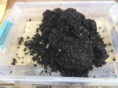 Then I dump it into their container after I washed it and it looks like this. This also eliminates those little mites that grow in there for some reason but those things, being insects float so they are easy to wash out.