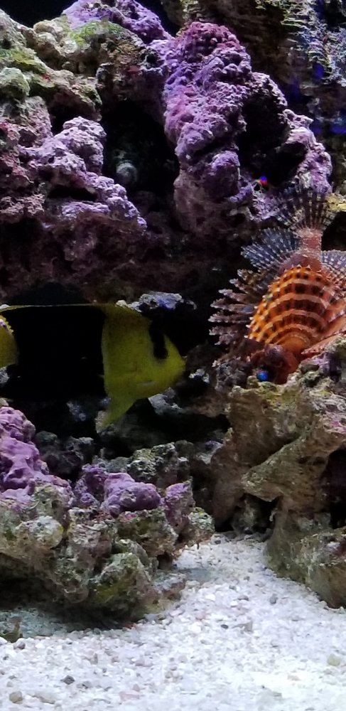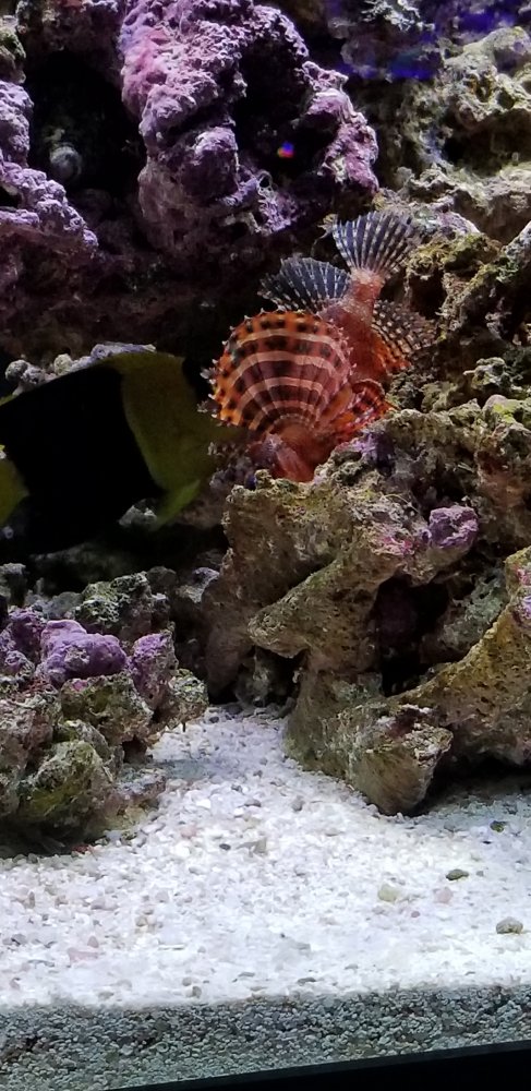 I have a 210 Fowler. My fuzzy dwarf lion (full grown) died about a month ago. I just took the new guy (little guy) out of QT on Sunday. Last night I noticed that the Lion's tail had some chunks taken out of it. Tonight I caught my dwarf bicolor angel picking on him . The lion is still active, but is obviously bothered by this. He did eat tonight.