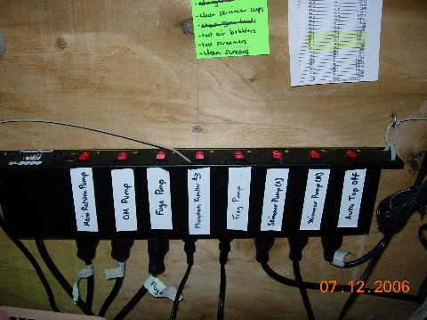 I have a bank of power strips mounted with the cords all in split loom running to a DC8 aquarium controller. Not the most elegant I can think of but I can reconfigure the power set up very quickly. Next time I will probably wire a power distribution box just for the outlets. The split loom can help to keep the wires under control.