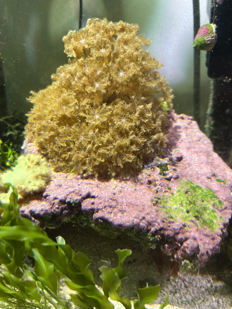 For Sale: one piece of tonga shelf rock with a clove colony. Currently sitting in a macro algae/soft coral tank (2nd pic, full tank shot). The cloves have fluorescent orange lines under blue light and could easily be fragged if wanted. $20 OBO
