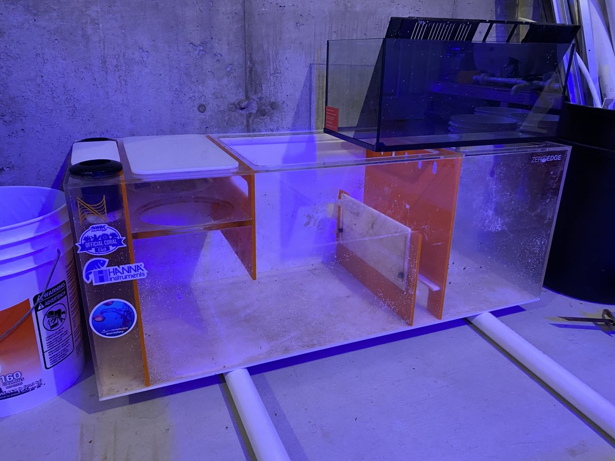 Zero Edge 7 series sump . Follow link for all information . For some reason this one doesn't have tubing holders . Sump was taken offline and rinsed out , I dont have time or the will power to clean it so it will be sold dirty . I upgraded the bulkheads to 1.5” and will also come with a Klir7 flow diverter .