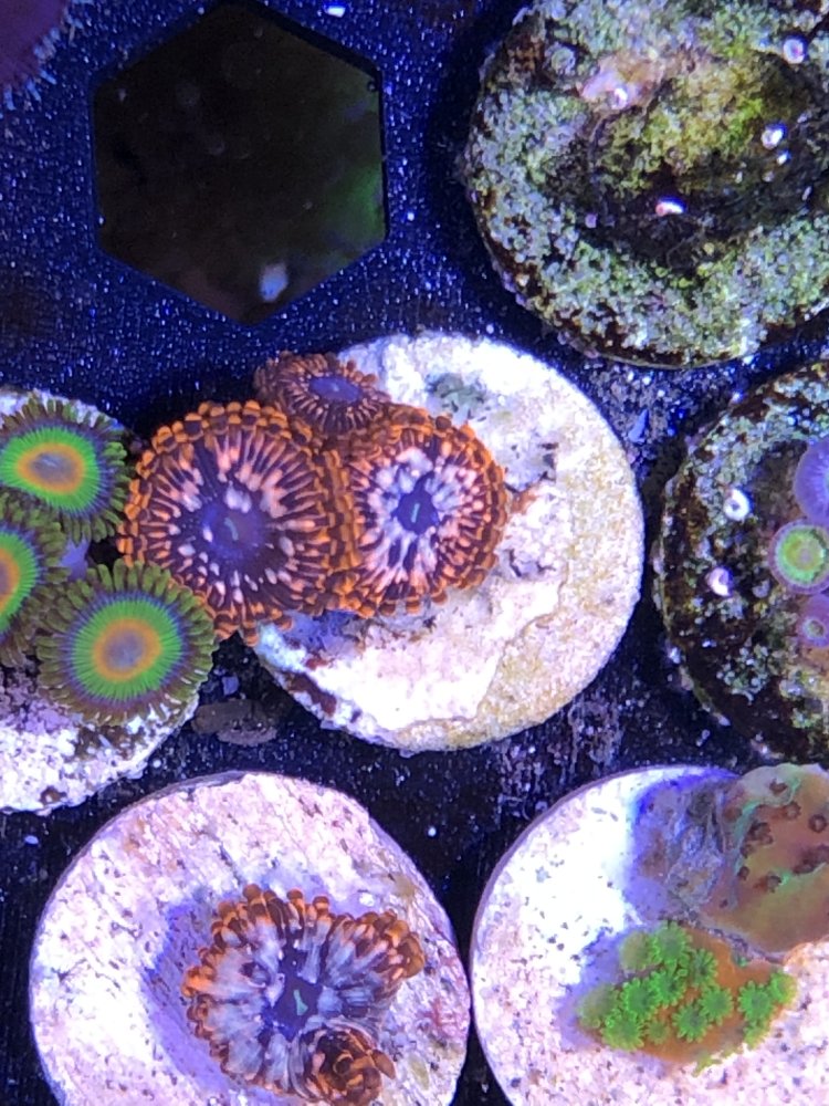 6 pack of zoa frags for $100 - blue eyed blondies, rastas, star gazers, purple death, utter chaos, and nightmares (I believe)